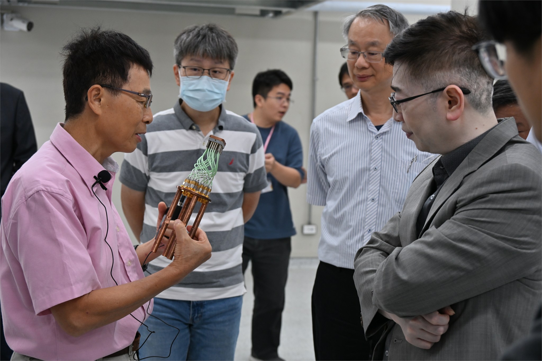 中央大學研究發展處羅夢凡研發長率領研究核心設施中心侯敦仁主任、光電科學研究中心陳昇暉主任及理工學院多位師長,近日參訪南部院區關鍵中心。訪團對於量子電腦、光電與太陽能等相關研究與設施展現高度興趣,並對關鍵中心目前已投入營運的設施服務表示高度讚賞。大家對南部院區的研究環境印象深刻,反應熱烈,躍躍欲試,期盼未來有更多合作與交流的機會。