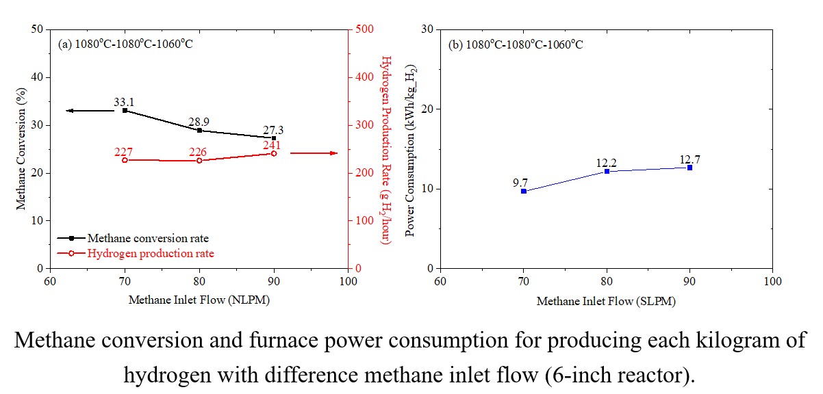 The Net Zero Technology Research Project is dedicated to advancing zero-carbon emission technologies. To support the transition of conventional gas-fired equipment toward gas/hydrogen co-firing systems, we have developed a methane/natural-gas cracking system that has now reached pilot-scale production. The system can stably produce a hydrogen/natural-gas mixture containing 50% hydrogen at a rate of 2.5 m3/hr. Its energy consumption for hydrogen production is 9.7 kWh per kilogram of H2, which is lower than the values reported for other hydrogen-production technologies in the literature. The equipment design and experimental analysis have been compiled and reported in the International Journal of Hydrogen Energy (Impact Factor: 8.3; Update Date: June 2025). “Methane pyrolysis for mixed hydrogen power generation: Performance of two pilot-scale moving-beds.”